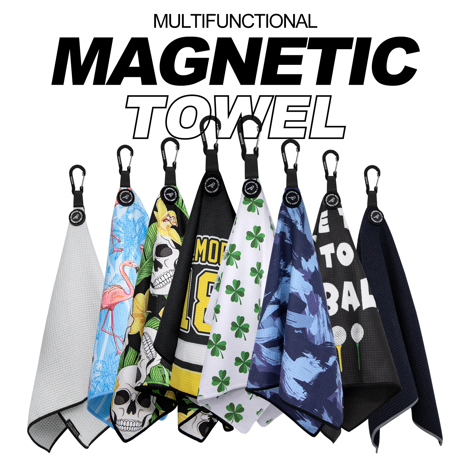 多機能マグネットワッフルゴルフタオル フック付き