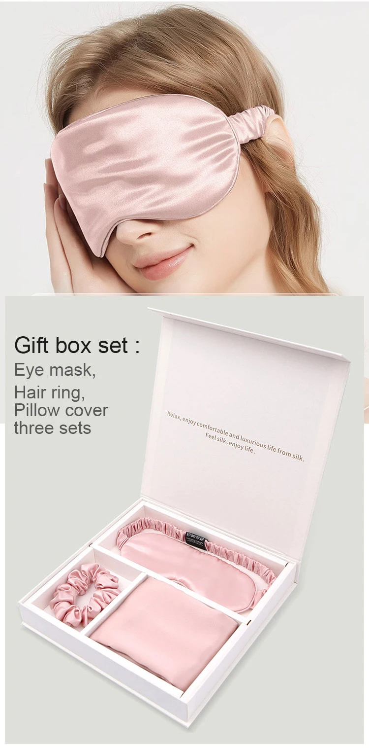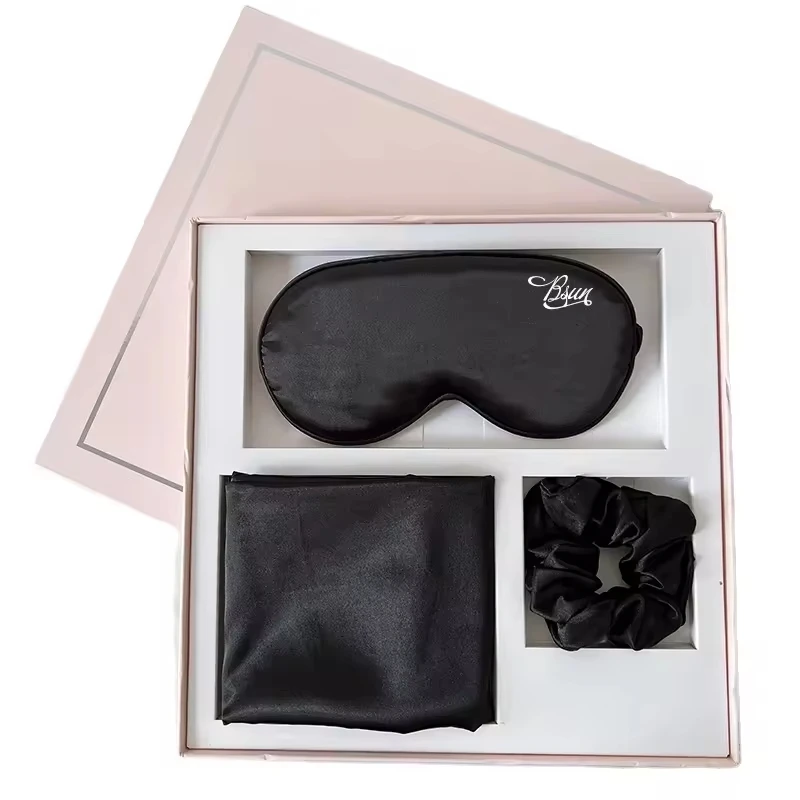 高級シャルムーズ ボックス ピローケース サテン スリーピング アイマスク セット